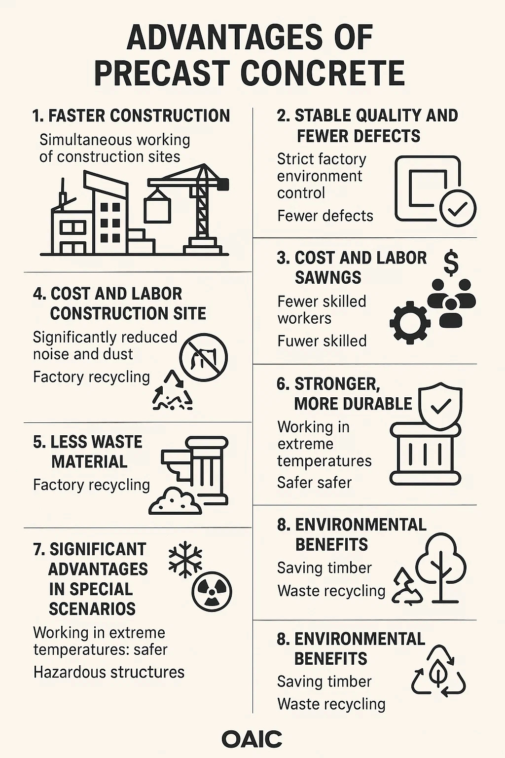 滑らかで見た目にも美しい表面: プレキャストコンクリート型は滑らかまたは質感のある仕上げを提供し、追加の左官塗りや仕上げの必要性を排除します。