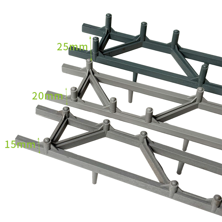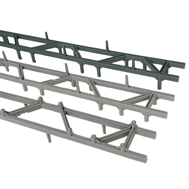 プラスチック鉄筋はしごスペーサーは、コンクリート構造物の鉄筋 (鉄筋) の層を支持し、分離するように設計されています。はしご型の設計により、上部と下部の補強層の間に正しい間隔が確保され、正確なコンクリートのかぶり厚さを維持することができます。